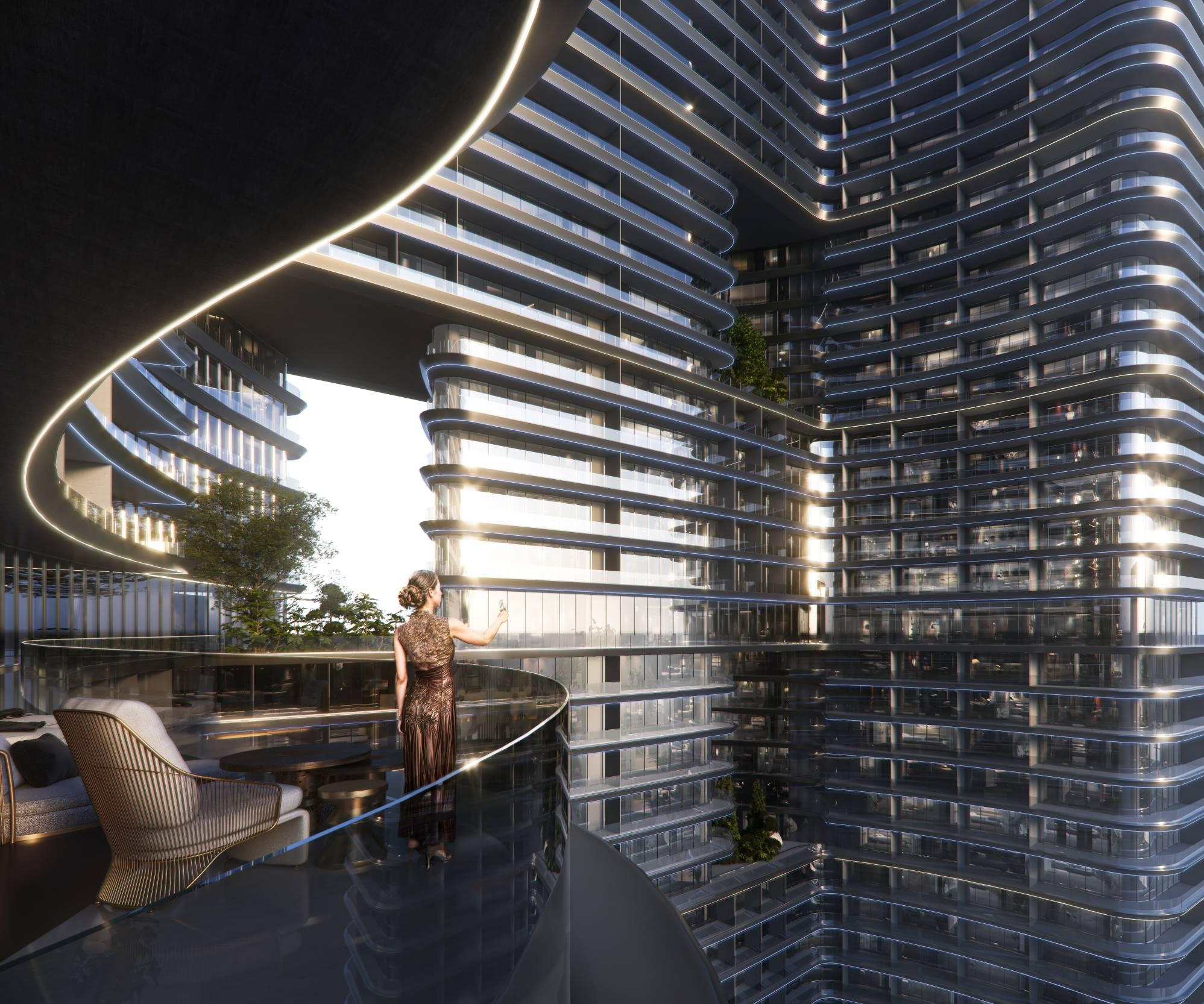 This elegant studio apartment for sale in Binghatti Hills, Dubai Science Park, a landmark twin-tower development located directly opposite Dubai Hills Mall.